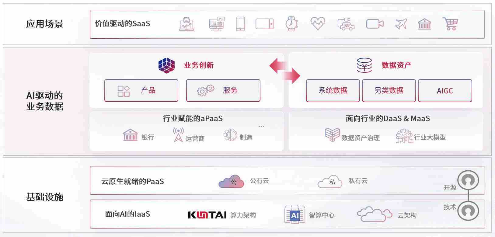 数字时代,,,,围绕企业数字化转型的关键要素,,TB钱包数码开创性的提出数云融合战略和技术体系框架,,,着力在云原生、、、、数字原生、、AI原生和信创产业上架构产品和服务能力,,为处在不同数字化转型阶段的快消零售、、、、汽车、、金融、、、医疗、、、、政企、、教育、、、、运营商等行业客户提供泛在的敏捷IT能力和融合的数据驱动能力,,构建跨界融合创新的数字业务场景和新业务模式,,,,助力企业级客户建立面向未来的核心能力和竞争优势,,全面推动社会的数字化、、、智能化转型升级。。。。